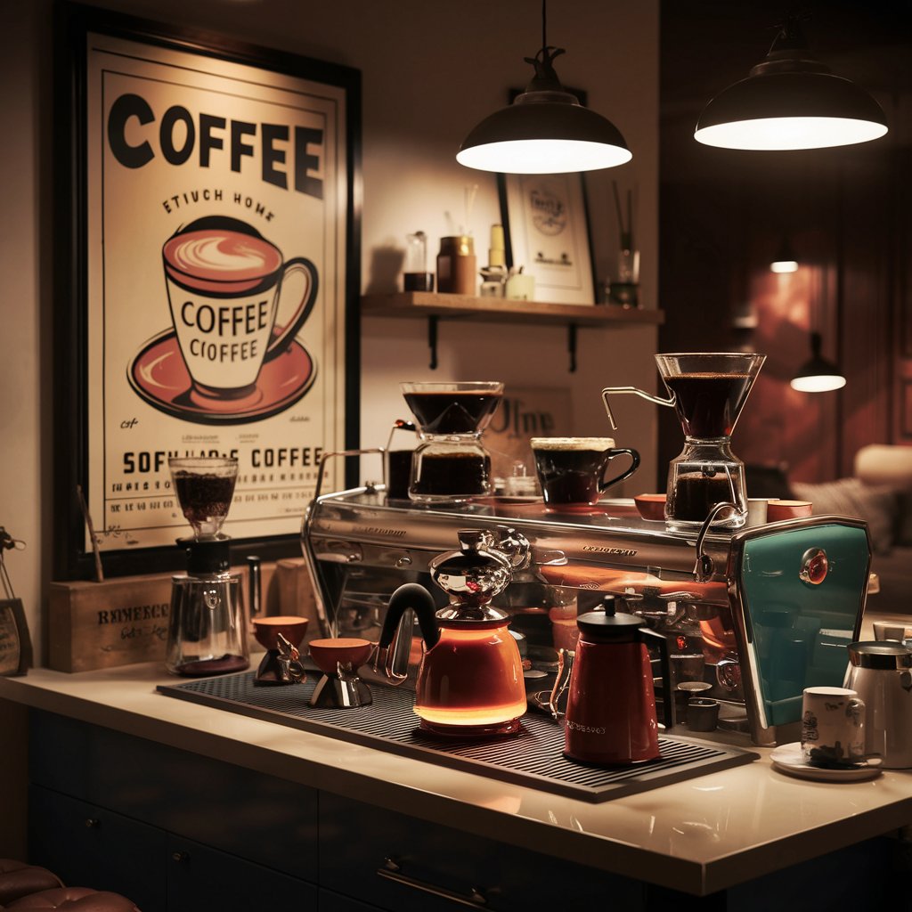 - Retro Posters: Hang a few retro coffee posters or signs above your station. These can be vintage finds or reproductions that capture the essence of classic coffee shops.