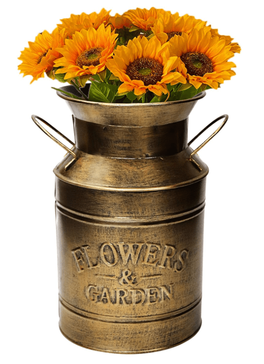 For smaller accents, try the Large Antique Gold Galvanized Milk Can Vintage Country Style Farmhouse Vase. These charming mini vases are ideal for showcasing fall flowers or foliage, adding just the right touch of autumnal sophistication.