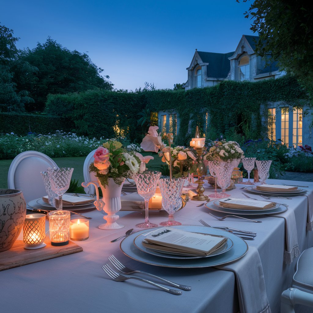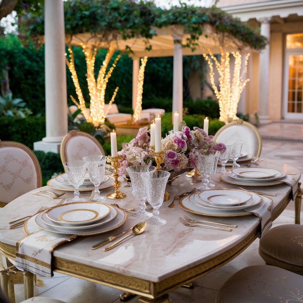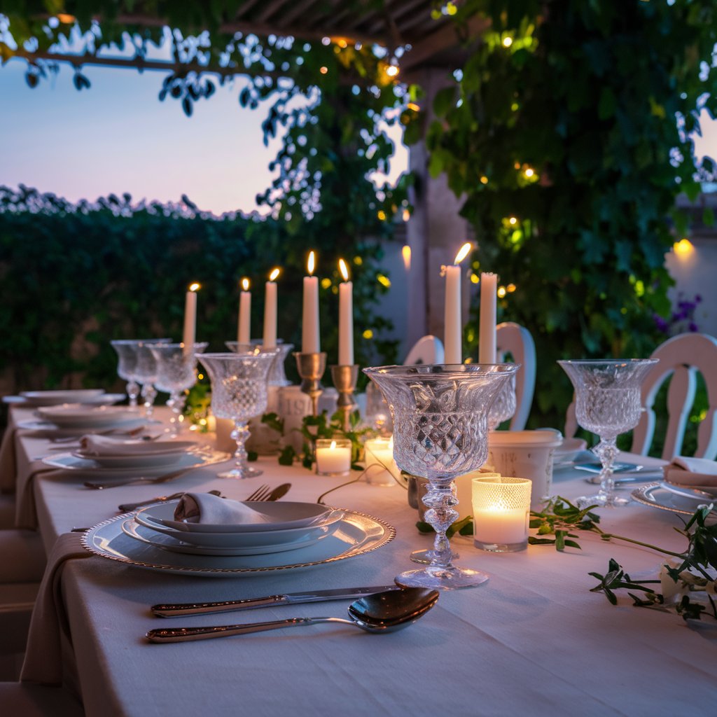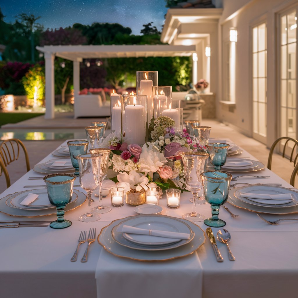 11 – Luxury Outdoor Dining Setup with Candles and Fine Tableware