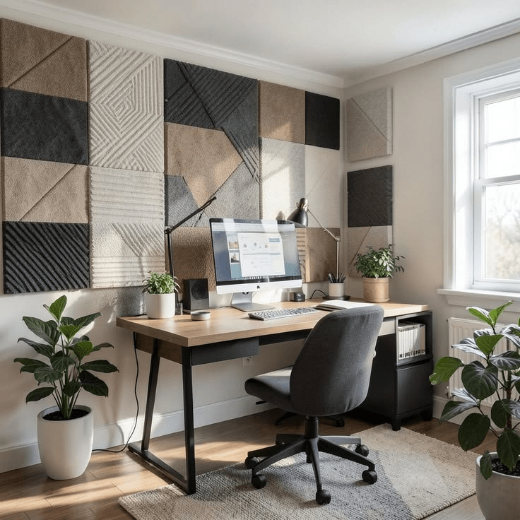 Prioritize the wall directly behind your monitor what appears on your video calls and the wall to your dominant side. If you’re right-handed, a panel cluster on the right wall catches sound from your open-plan space before it reaches your ears.